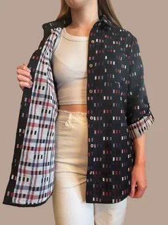 Рубашка в клетку хлопковая удлиненная