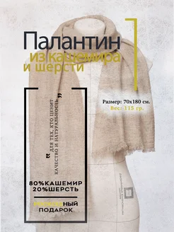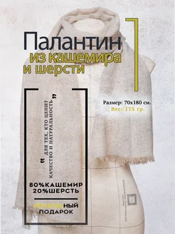 Бежевый палантин кашемир и шерсть натуральный, премиум