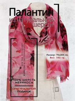 Шарф широкий, палантин с принтом шерсть мериноса 100%