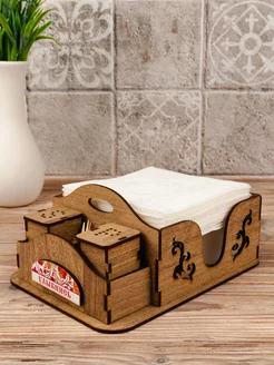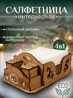 Салфетница на стол деревянная для сервировки интерьерная 4в1