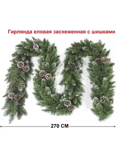 Гирлянда еловая заснеженная с шишками 270 см новогодняя