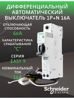 АВДТ (Диф. автомат) Schneider Electric Easy9 1P+N 16A 30mA