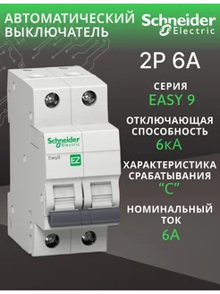 Автоматический выключатель Schneider Easy 9 2Р 6А 6kA