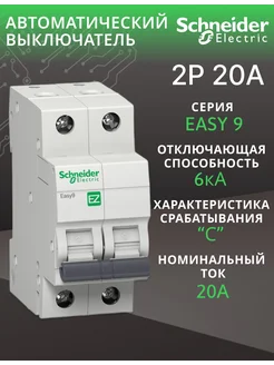 Автоматический выключатель Schneider Easy 9 2Р 20А 6kA