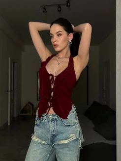 Топ с воланами вечерний со шнуровкой на груди у2к