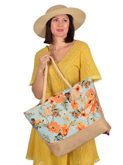 Сумка пляжная на молнии, с внутренним карманом, ручки канаты