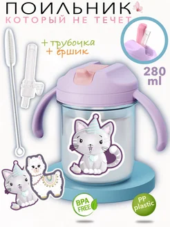 Поильник детский непроливайка с трубочкой и ручками