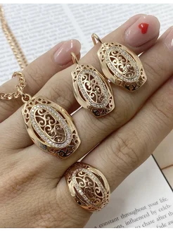 Набор серьги, кольца и цепочка с подвеской позолоченные