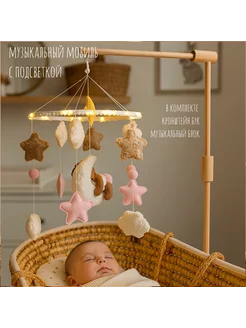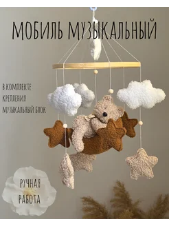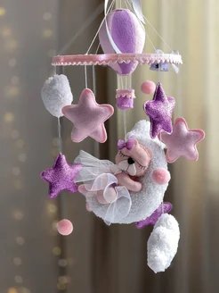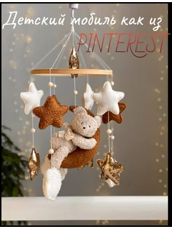 Мобиль в кроватку новорожденному из фетра мишка на луне