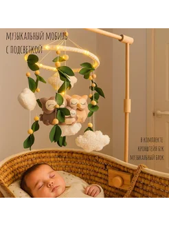 Детский мобиль в кроватку для новорожденных из фетра совы