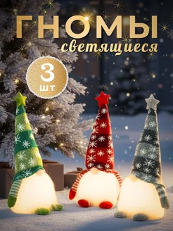 Гном новогодний светящийся набор 3 шт под елку на ножках