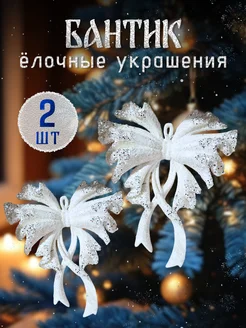 Елочное новогоднее украшение Бантик подвеска набор 2 шт
