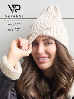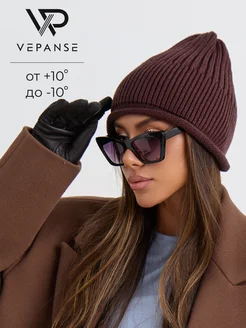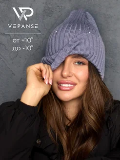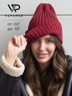 Шапка вязаная осенняя бини с пайеткой зимняя