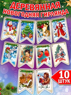 Деревянные елочные игрушки новогодние Домики 5 штук