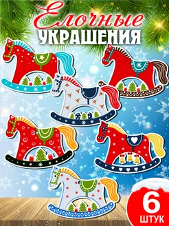 Деревянные елочные игрушки новогодние Лошадки 6 штук
