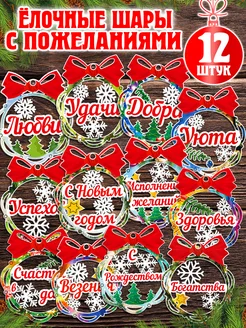 Деревянные елочные игрушки новогодние Шарики 12 штук