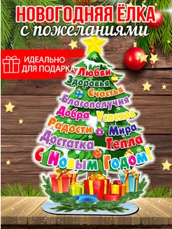 Новогодняя ёлочка сувенир с пожеланиями из дерева
