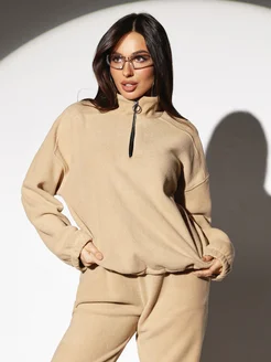 Костюм спортивный с джогерами и худи оверсайз полузамок