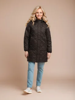Пальто стеганое длинное с капюшоном