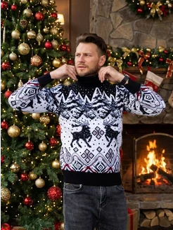 Теплый новогодний свитер с оленями