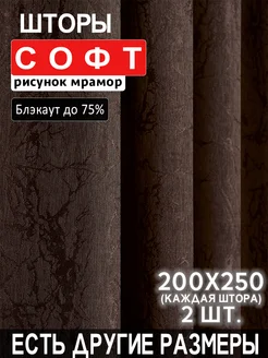Комплект однотонных плотных штор мрамор 200x250 см 2 шт