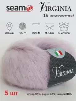 Сеам Вирджиния 38 василек мохер акрил нейлон 5 шт