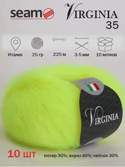 10 шт. Сеам Вирджиния 35 лимон мохер акрил нейлон 10 шт