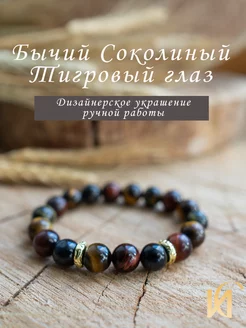 Браслет из камней Тигровый, Бычий, Соколиный глаз 10 мм