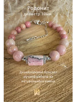 Браслет дизайнерский из натуральных камней Родонит 10мм