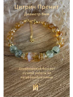 Дизайнерский браслет из натуральных камней Цитрин и Пренит