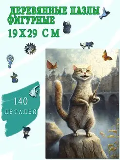 Большой деревянный пазл "Кот-рыболов-ловец снов"