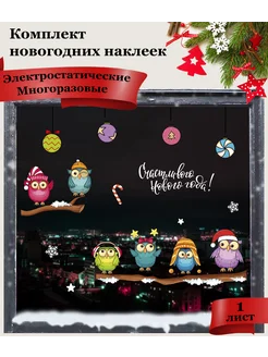 Новогодние наклейки на окна, зеркало