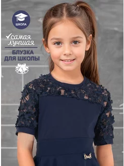 Блузка школьная нарядная с коротким рукавом и кружевом