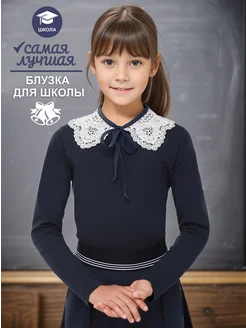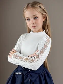 Блузка школьная нарядная с длинным рукавом и кружевом
