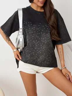 Футболка варенка оверсайз со стразами