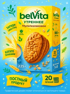 Печенье Утреннее со злаковыми хлопьями, 2 шт х 225г