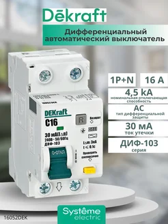 Дифавтомат 16A 1Р+N тип AC ДИФ-103
