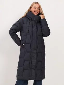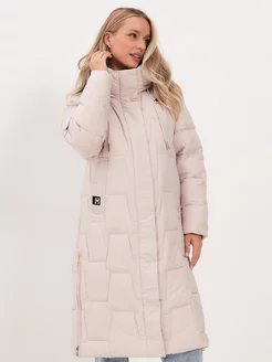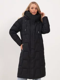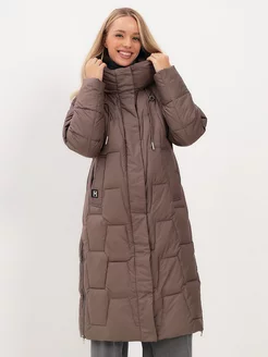 Пуховик высокий воротник длинный с капюшоном