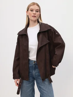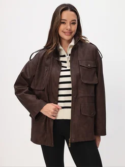Кожаная куртка оверсайз с многочисленными карманами