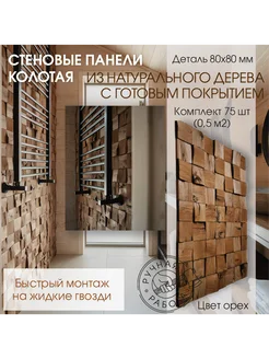 Стеновые панели 3д. Колотая цвет орех,80х80мм,в 1 уп - 0,5м2