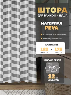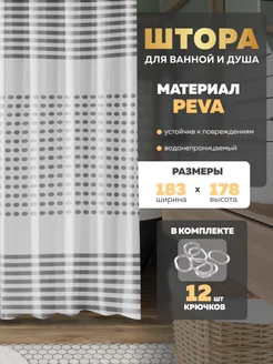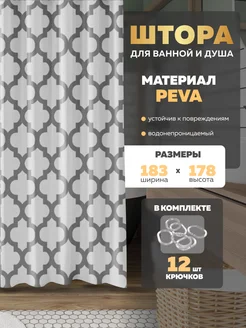 Штора для ванны Peva 180x180 белая с принтом + кольца