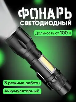 Фонарик на аккумуляторе ручной с USB