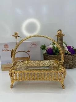 Фруктовница металлическая со стеклянным блюдом с ручкой