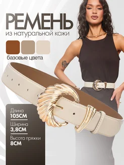 Ремень кожаный для платья с круглой пряжкой 3,8 см