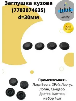 Заглушка кузова d=30 для Лада Веста Хрей Рено Логан