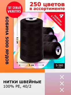 Нитки для шитья швейные 40 2 5000 ярд черный