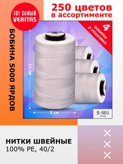 Нитки для шитья швейные 40 2 5000 ярд белые