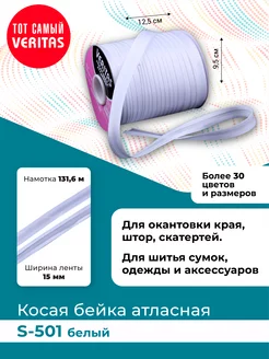 Косая бейка атласная 15мм*131,6м лента тесьма