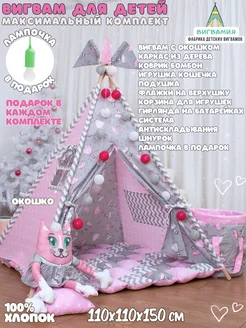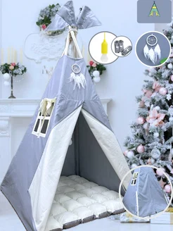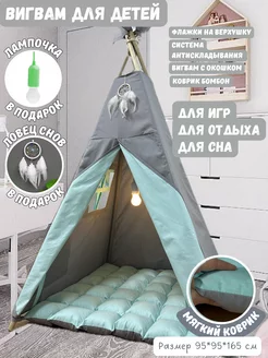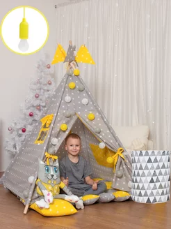 Умный вигвам детский с ковриком и лампочкой на батарейках