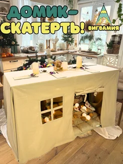 Вигвам детский Льняной с ковриком подушкой и лампочкой